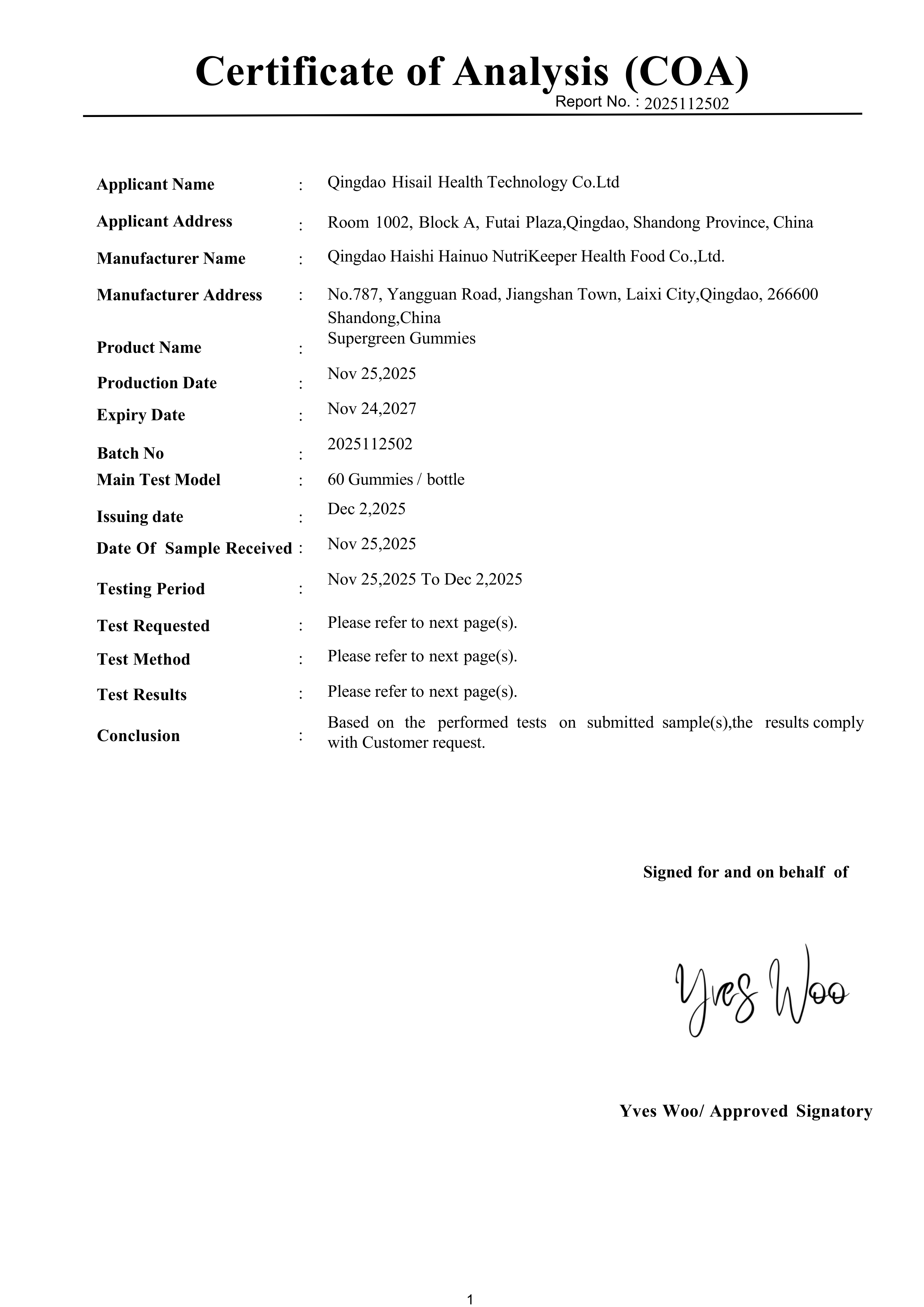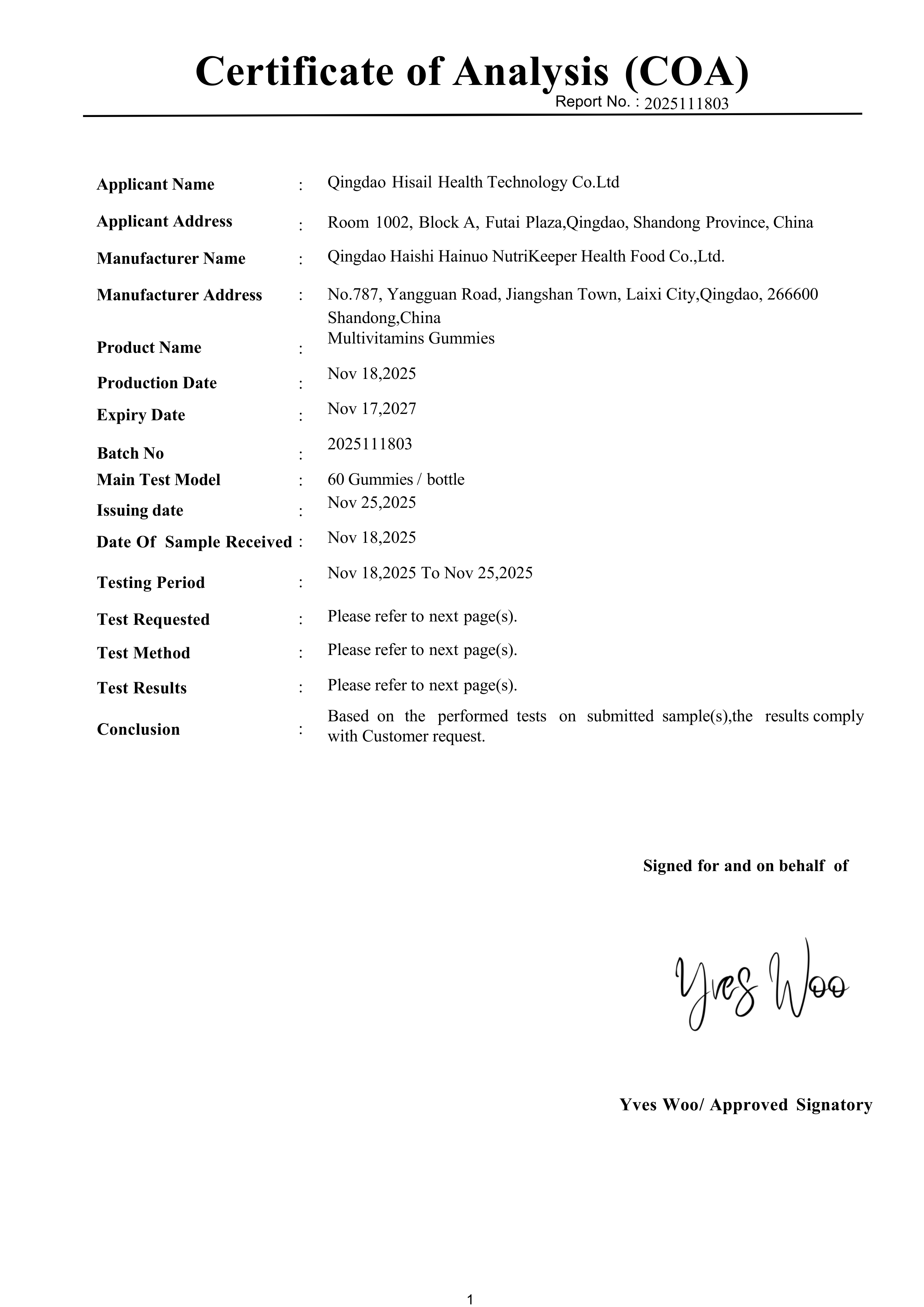 Our Certificate